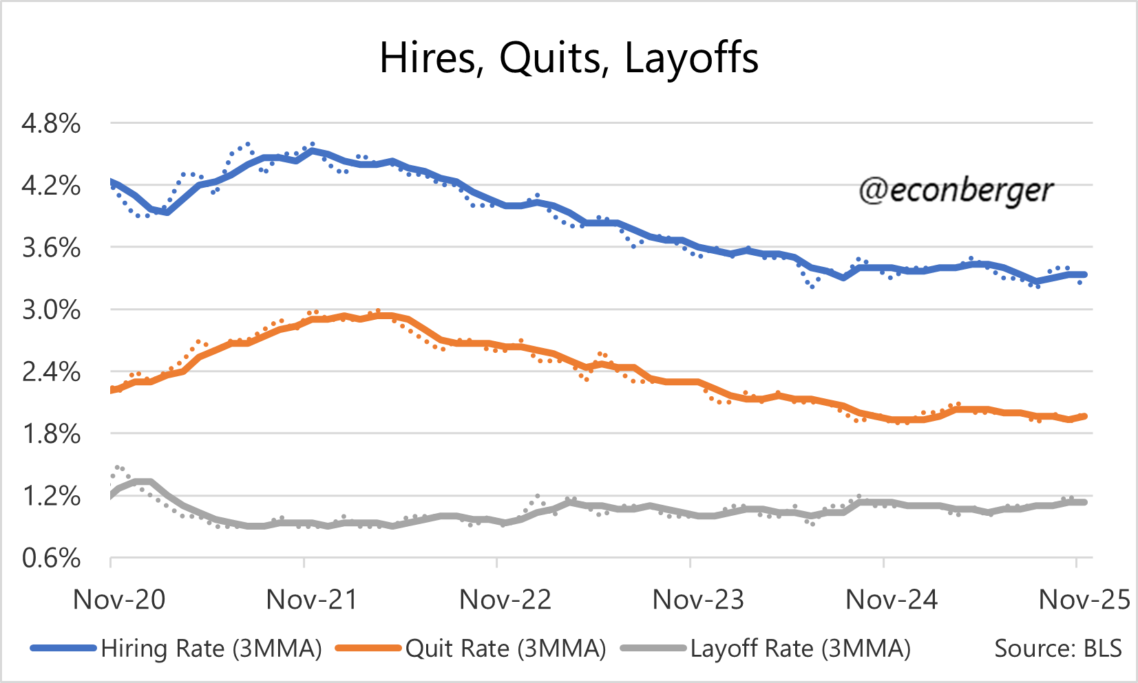 In case you are interested in what will happen to hiring and layoffs going forward, you may find my 2026 labor market preview useful. I think layoffs won’t do much, but hiring will be a little lower by the end of the year.