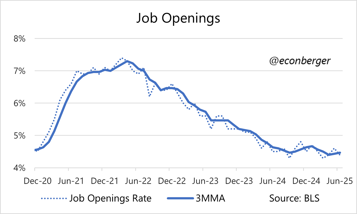 Finally, if you read this newsletter you know that job openings are my least favorite part of this report but… they've stopped falling, too.