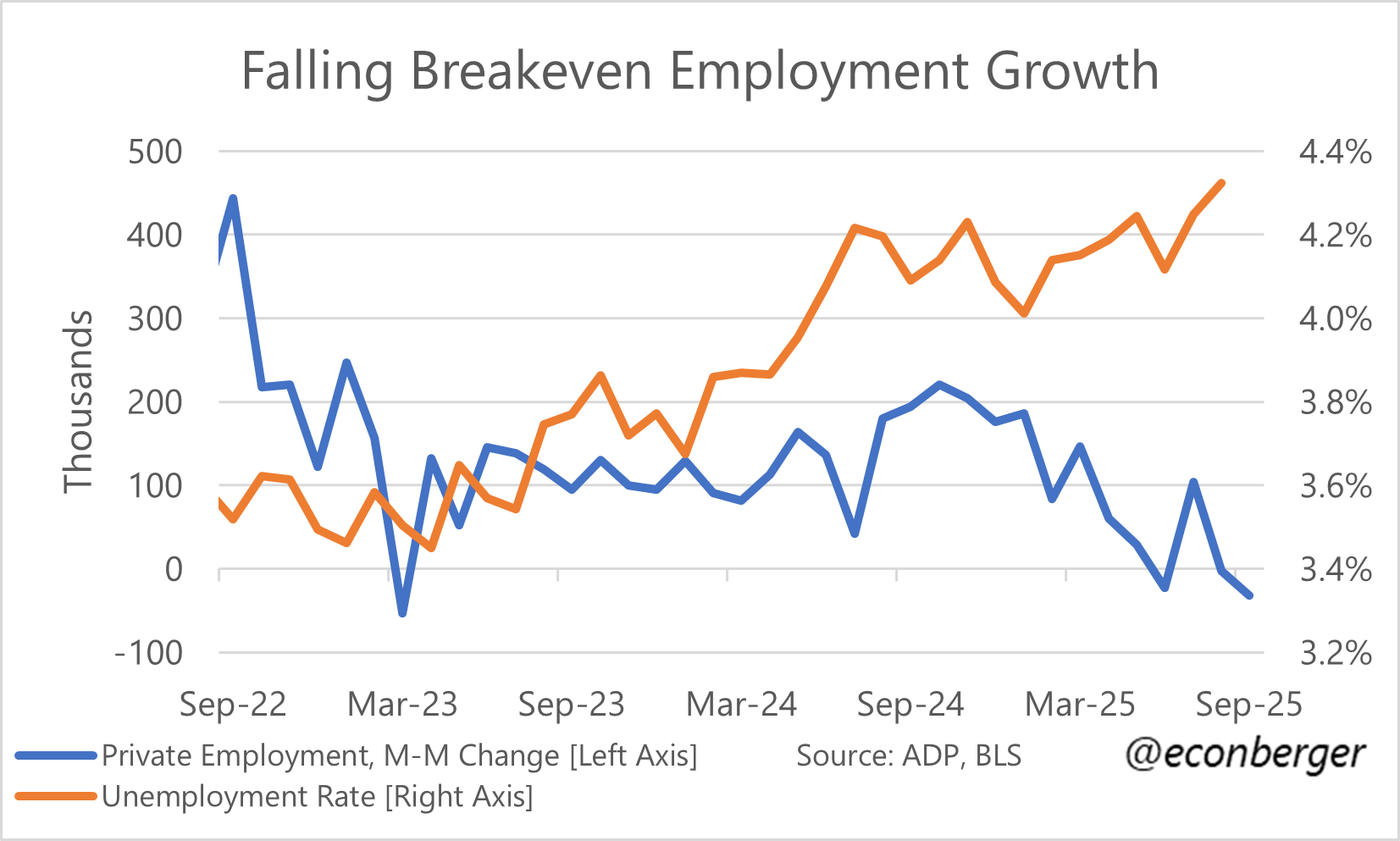 TL;DR: With the probable government shutdown potentially disrupting short-run statistics publication and risk of government tampering looming in the background, I review two novel sources of labor market tracking from the Chicago Fed and Revelio as well as a grizzled veteran (ADP).